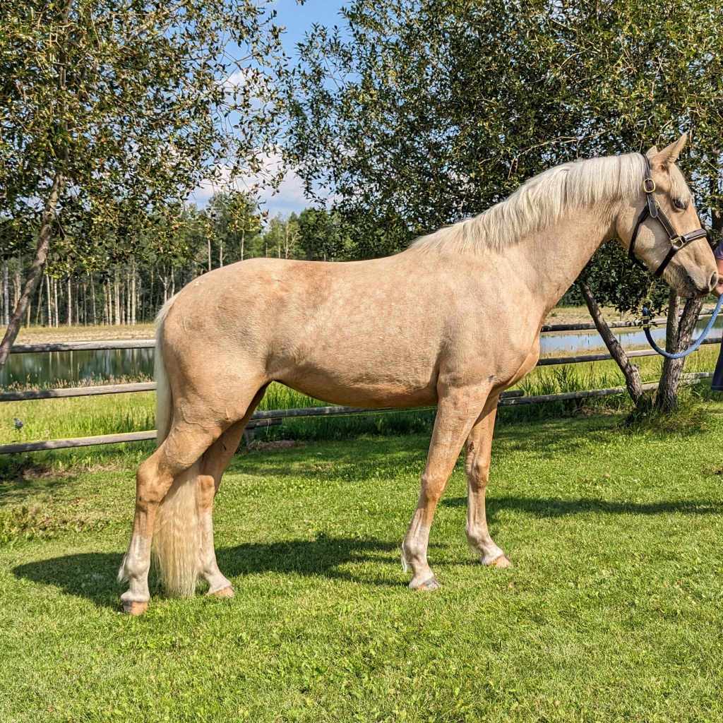 easily. She is good to groom and coming along nicely with her feet. We expect her to mature around
